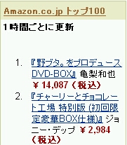 山下智久君、亀梨和也君、中島裕翔君等が出演したドラマ「野ブタ。をプロデュース」のDVD「野ブタ。をプロデュース DVD-BOX」が、AmazonでDVD売上ランキング1位になりました。特典映像を収録予定ということもあってか、予約が殺到しているようです。